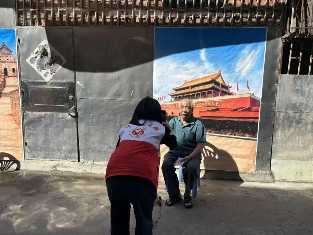 今年104岁高龄的杨秀英是烈士陈文修的母亲。虽已期颐之年,老人仍然能够自理日常生活,她分享道,“一天三餐都规律,还能自己洗衣服、晒被子。” 志愿者们轮流为老人送上鲜花、米油和慰问金,关心了解她的生活状况。
