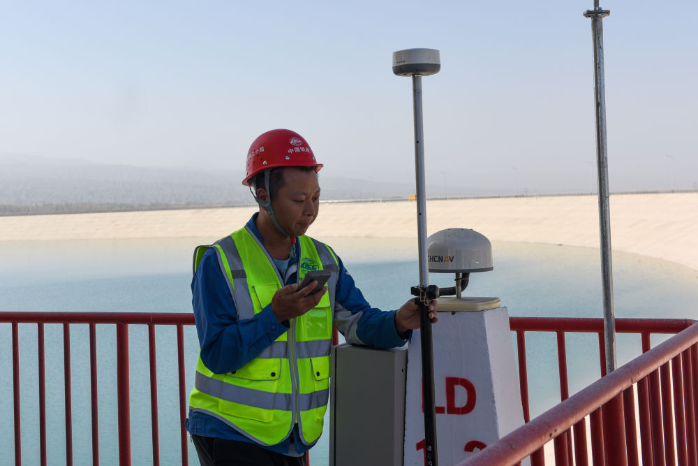 ↑ 11月1日10大配资平台,施工人员在奥吞勒克水库检查闸控系统设备试运行情况。新华社记者 高晗 摄影报道